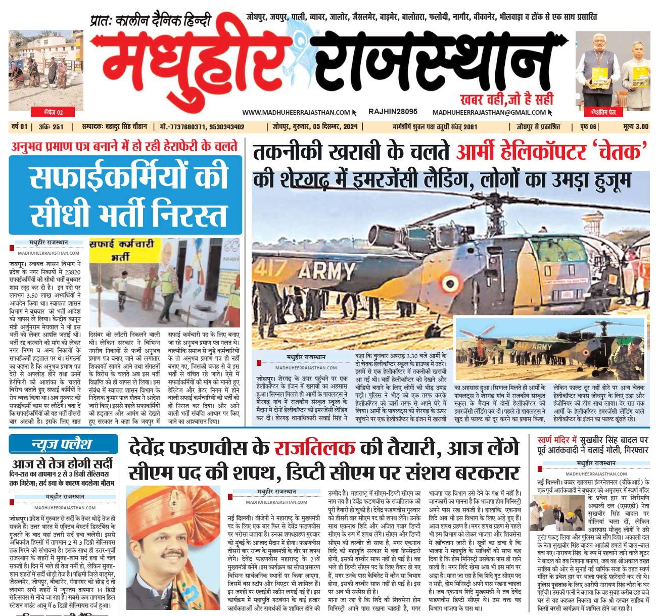 क्या आप \"madhuheerrajasthan\" की खबरों से संतुष्ट हैं?