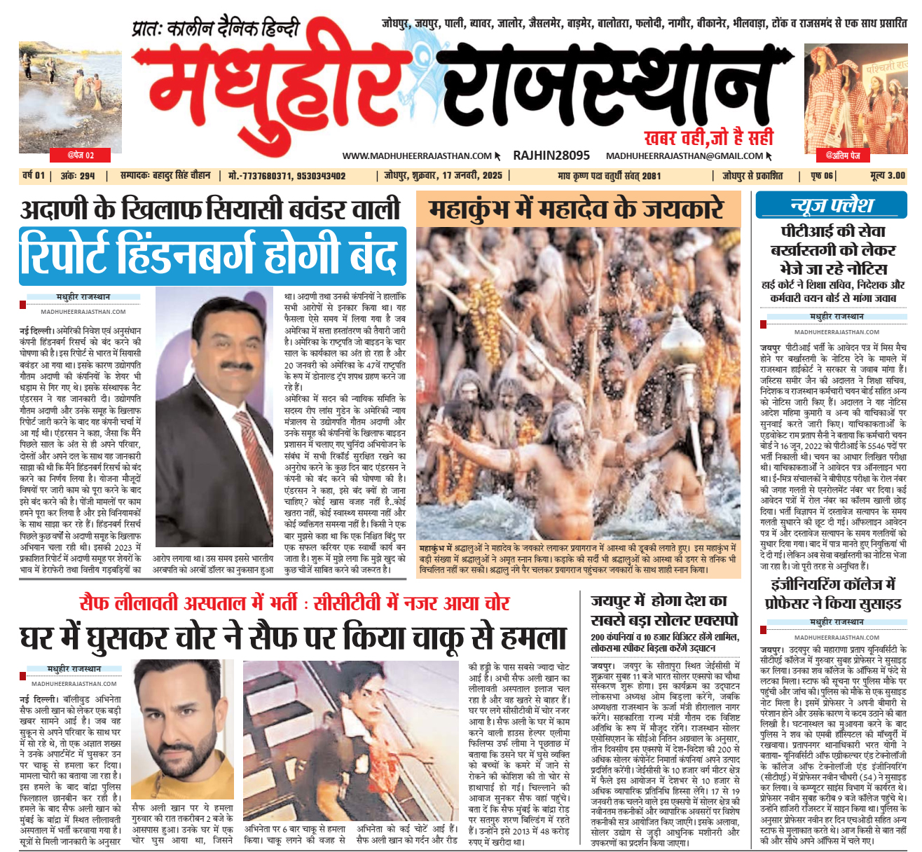 क्या आप \"madhuheerrajasthan\" की खबरों से संतुष्ट हैं?