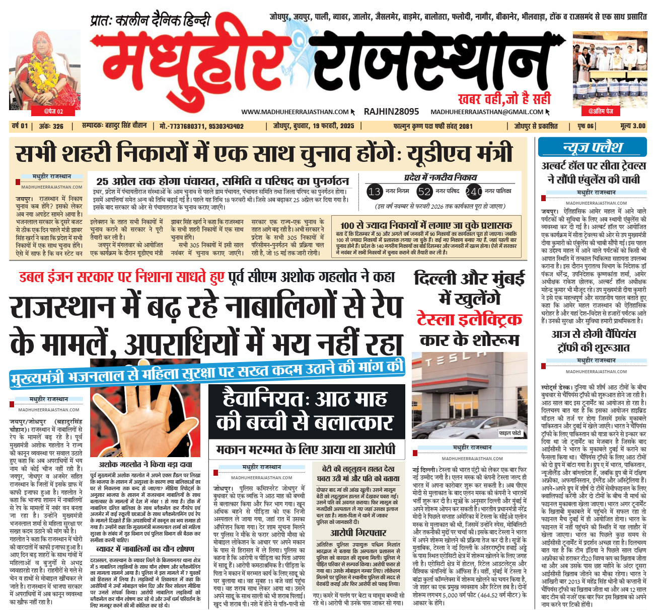 क्या आप \"madhuheerrajasthan\" की खबरों से संतुष्ट हैं?
