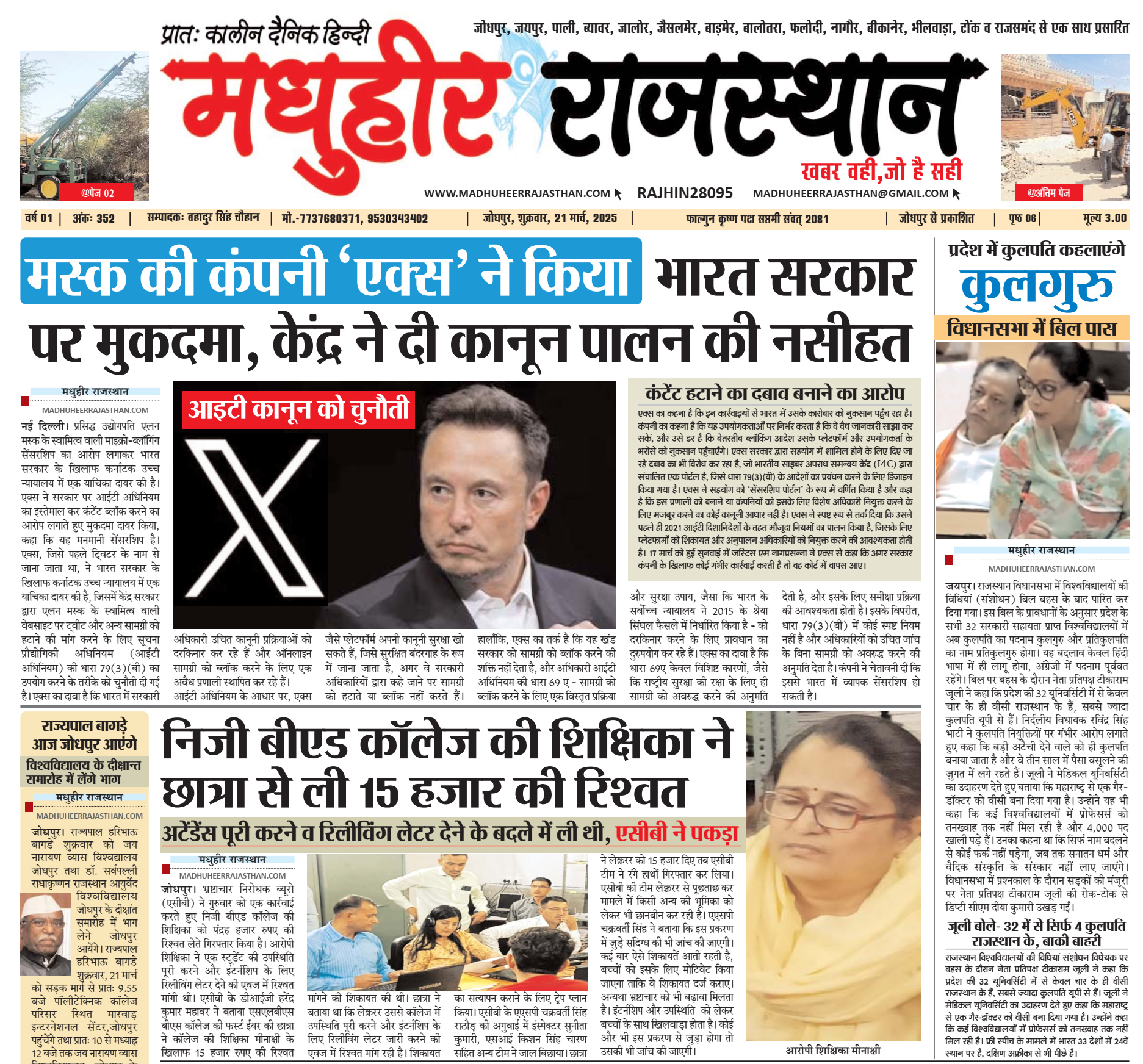 क्या आप \"madhuheerrajasthan\" की खबरों से संतुष्ट हैं?