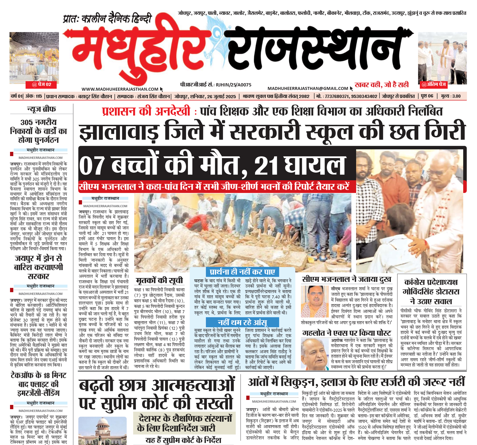 क्या आप \"madhuheerrajasthan\" की खबरों से संतुष्ट हैं?