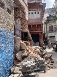 जोधपुर। शहर के भीतरी क्षेत्र नवचौकिया में आज सुबह एक पुराना जर्जन मकान गिर पड़ा। गनीमत रही कि इस मकान के ध्वस्त होने के कारण होने जन हानि या बड़ी धनहानि नहीं हुई। वहीं मसूरिया क्षेत्र में भी एक मकान की बालकनी भरभराकर गिर गई।