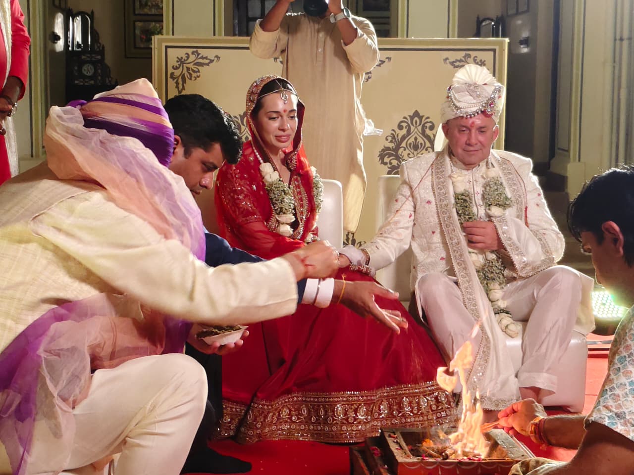 दंपती ने भारतीय परंपरागत परिधान पहने। भारतीय धुनों पर ठुमके लगाए। यूक्रेन से आए स्टानिस्लाव जरदोजी वर्क की शेरवानी पहन दूल्हा बने व लाल सुर्ख रंग की जरी वर्क की राजपूती पोशाक पहने दुल्हन एंजेलिना ने सुबह हल्दी व मेहंदी की रीति रिवाज को पारंपरिक गीत के साथ निभाया। शाम को उम्मेद भवन से गाजे बाजे के साथ बारात निकली जो विवाह स्थल पर आई जहां दूल्हे ने तोरण मारा। दूल्हे को टीका लगाने के बाद वरमाला हुई। उसके बाद मंत्रोच्चार के बीच विवाह कार्य संपन्न हुआ। दूल्हे ने दुल्हन को मंगलसूत्र पहनाया और मांग भरी। अग्नि को साक्षी मांग कर वैदिक मंत्रोच्चार के बीच सात फेरे लेकर जन्म जन्मों का संकल्प लिया।
