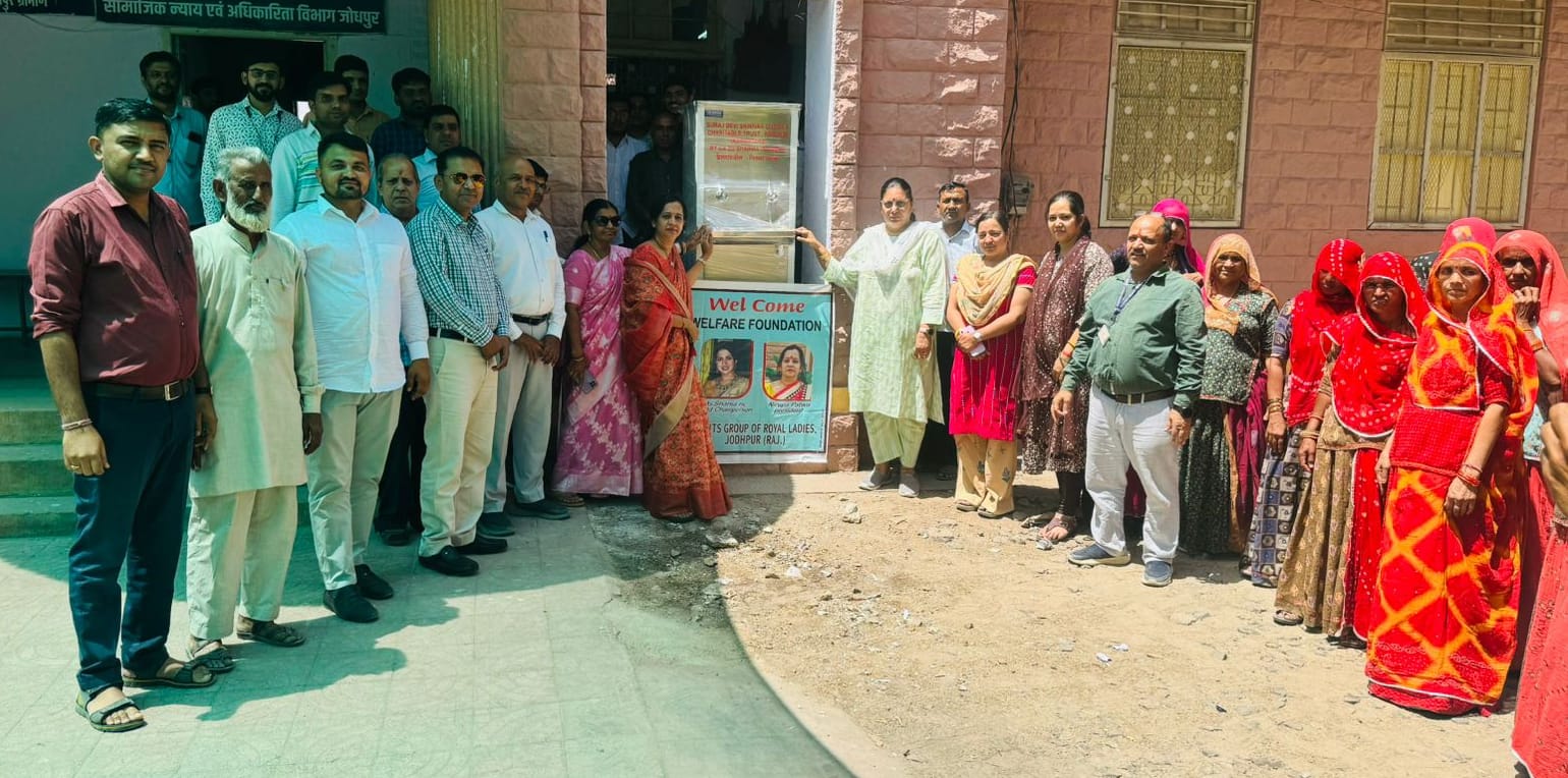 जोधपुर। जॉयंट्स ग्रुप ऑफ़ रॉयल लेडीज द्वारा सामाजिक न्याय एवं अधिकारिता विभाग को वाटर कूलर भेंट किया गया। अध्यक्ष निरूपा पटवा ने बताया कि वैशाख माह के अमावस्या पर भीषण गर्मी से आम आदमी को राहत दिलाने के लिए जलदान के तहत वाटर कूलर भेंट किया गया जिसके प्रमुख सहयोगी प्रेरणा ओझा रहे। इनके साथ सीए बीएस शर्मा एवं सूरज देवी श्रीनिवास गुड़गिला चेरिटेबल ट्रस्ट का भी प्रमुख सहयोग रहा। सचिव ममता चोरडिया ने बताया कि कार्यक्रम में संयुक्त निदेशक मनमीत कौर, मगराज, रमेशचन्द्र पंवार, भजनलाल विश्रोई, जानकीदास चौहान, प्रियंका, उषा सोनी, मधु कटारिया, अन्नपूर्णा शर्मा, सुनील सुथार, ताराराम, राजू सिंह आदि की उपस्थिति रही।