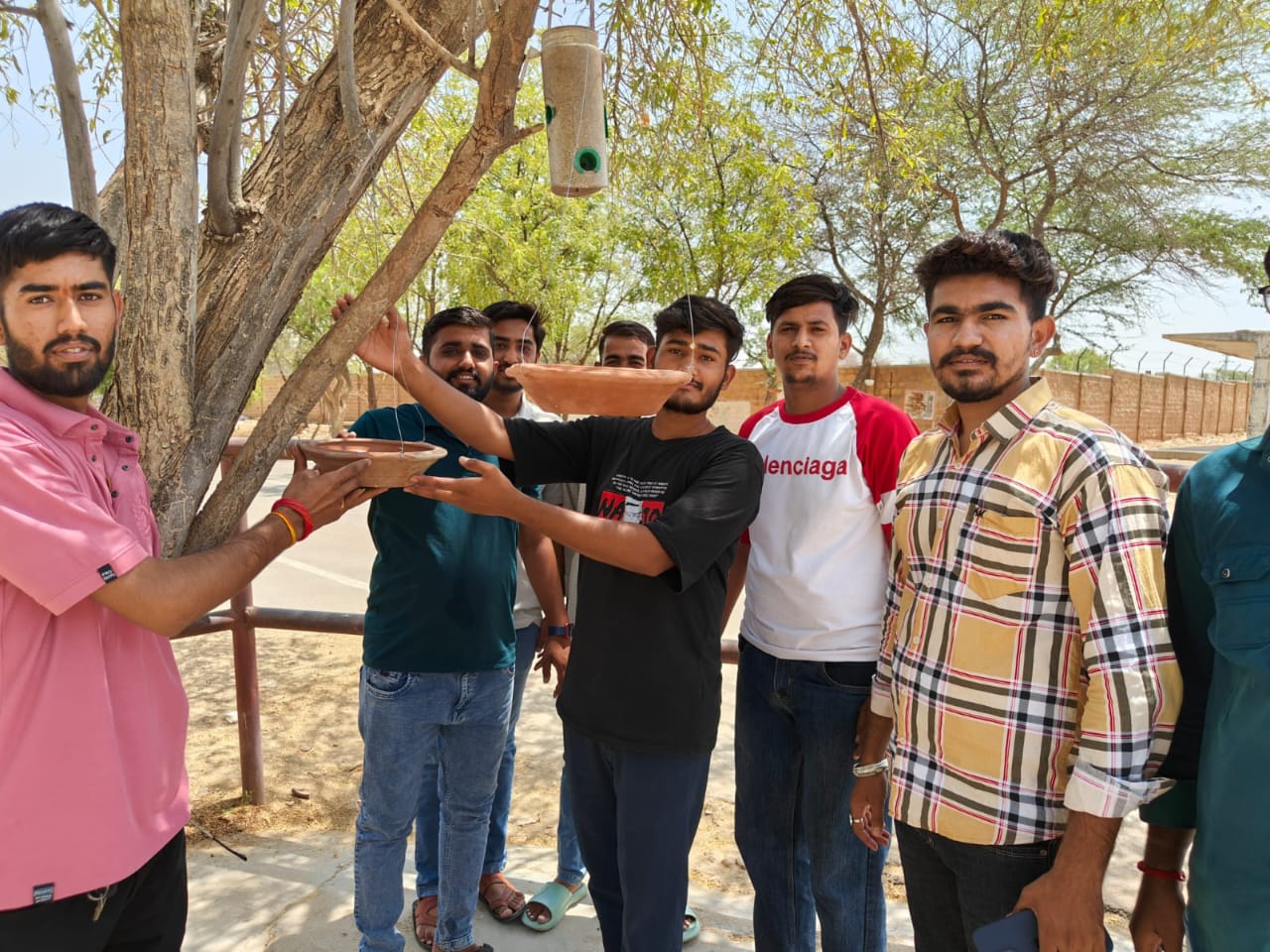 जैसलमेर। प्रभारी डॉ ममता शर्मा ने बताया कि मूक एवं बेजुबान पक्षियों हेतु दाना पानी की व्यवस्था के लिए महाविद्यालय में वृक्षों पर परिंडे लगाए गए एवं श्रमदान किया गया। महाविद्यालय परिसर को प्लास्टिक मुक्त बनाने हेतु स्वयंसेविकाओ ने शपथ ली ।स्वयंसेविकाओ ने पौधों की सिंचाई की एवं उनका ध्यान रखने का संकल्प लिया। इस अवसर पर महाविद्यालय प्राचार्य डॉ श्याम सुंदर मीणा ने बताया कि पर्यावरण संरक्षण हेतु आवश्यक है कि हम हमारे साथ पृथ्वी के अन्य जीव जंतुओं का भी ख्याल रखें एवं वृक्षों को बचाएं ।वरिष्ठ संकाय सदस्य श्री मेहराब खान ने बताया कि पृथ्वी पर जैव विविधता अति आवश्यक है। सभी जीव जंतु एक दूसरे पर निर्भर हैं अतः हमारा कर्तव्य है कि हम इस जैव विविधता को संरक्षित करें एवं सुरक्षित रखे। कार्यक्रम में वीरेन्द्र सिंह मसूरिया,नरेंद्र सिंह,उपेंद्र सिंह भाटी,करण प्रताप सिंह,भेरु वाघेला,मुकेश चौहान,महेन्द्र कुमार,विनोद परिहार,चन्द्रवीर सिंह सोलंकी ने परिंडे लगाए।