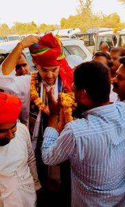देसुरी। कांग्रेस नेता पूर्व उप मुख्यमंत्री सचिन पायलट सांडेराव पहुंचने पर कांग्रेस पदाधिकारी एवं कार्यकर्ताओं द्वारा भव्य स्वागत किया गया। कांग्रेस बाली विधानसभा युथ कांग्रेस विधानसभा पूर्व अध्यक्ष जितेंद्र सोलंकी ने बताया कि पूर्व उप मुख्यमंत्री सचिन पायलट सांडेराव पहुंचने पर कांग्रेस पदाधिकारी एवं कार्यकर्ताओं ने कांग्रेस जिंदाबाद सचिन पायलट जिंदाबाद के नारों के साथ भव्य स्वागत किया गया इस दरमियान माल्यार्पण साफा व गुलदस्ता देने वालों की होड़ लगी रही। कुछ देर रुक कर पायलट भीनमाल विधायक समरजीत सिंह के माताजी के देहान्त होने पर शोक व्यक्त करने के लिए रवाना हो गए। इस अवसर पर सोमेन्द्र गुर्जर के नेतृत्व में यूथ कांग्रेस विधानसभा अध्यक्ष जितेन्द्र सोलंकी उपाध्यक्ष सुधांशु गुर्जर फालना पेमाराम देवासी नेतरा पूर्व सरपंच कुणाल गुर्जर विनोद देवासी सहित कांग्रेस पदाधिकारी कार्यकर्ता जनप्रतिनिधि मौजूद रहे।